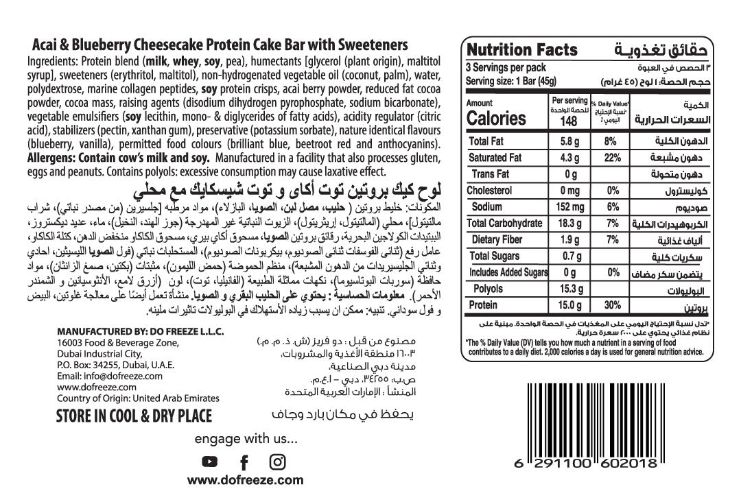 Acai & Blueberry Cheesecake Protein Cake Bar with Marine Collagen 3pcs/box