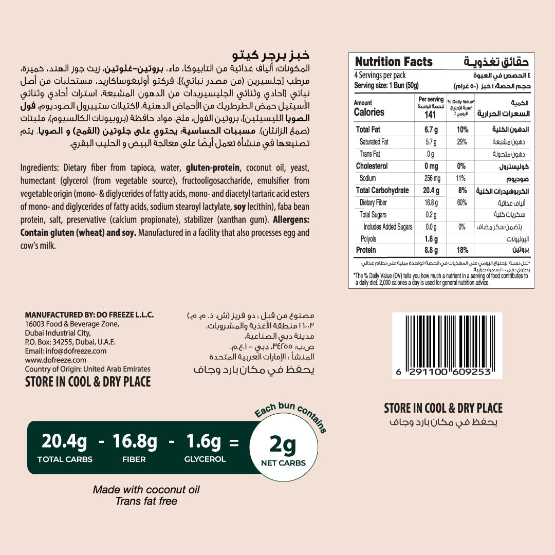 Burger Buns contain 4 perfect size buns contain 2g Net Carbs to make your favorite burgers, lunch sandwiches for you and your family.